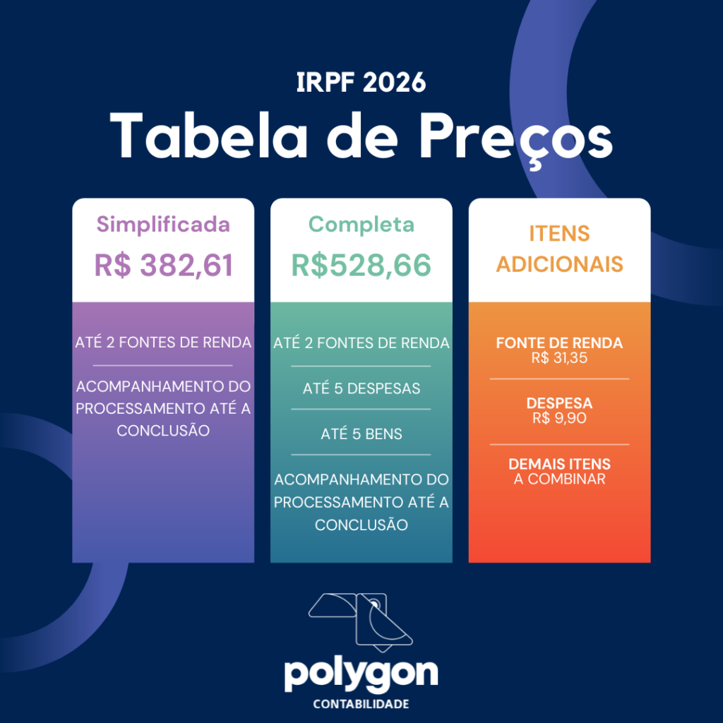 Na Polygon Contabilidade, oferecemos soluções completas para sua Declaração de Imposto de Renda 2026, garantindo tranquilidade, organização e conformidade com as normas da Receita Federal.